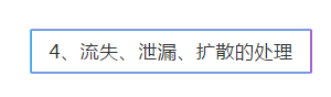 (4)采取適當的安全處置措施,對泄漏物及受污染的區域、物品進行消毒或者其他無害化處置,必要時封鎖污染區域,以防擴大污染;